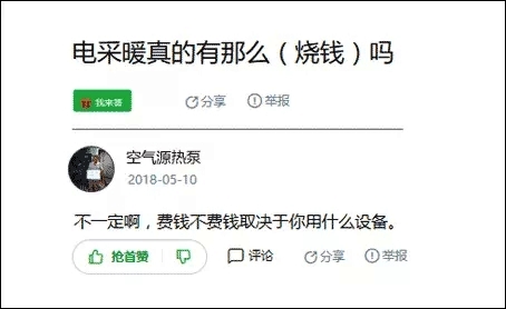 這是某論壇里一個關注度非常高的話題。在討論區(qū),有人這么回答:“不一定啊,費錢不費錢取決于你用什么設備。用費電的設備當然費錢,比燒煤還貴。用節(jié)能省電的設備當然不費錢。一方面在于熱轉化率,另一方面在于保溫。所以選擇比較好的設備和做好房屋保溫是很重要的”。