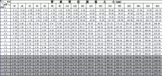 管道的選配要根據(jù)系統(tǒng)設(shè)計的流量流速要求選配管徑規(guī)格,具體可參考下表: