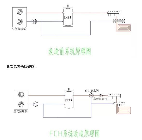 改造前空氣源熱泵系統原理圖: