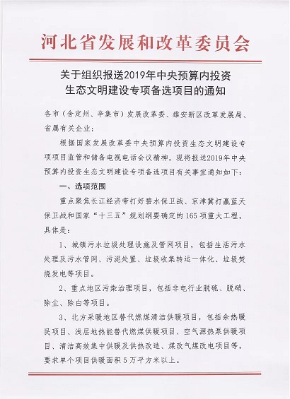 根據《中央預算內投資生態文明建設專項管理暫行辦法》(發改環資規〔2017〕2135號)和7月27日國家發展改革委中央預算內投資項目申報及監管電視電話會議精神,近期山東、河北、河南、吉林等地陸續發布關于組織申報相關項目的通知。