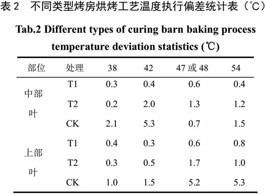 2.1 不同類型烤房對(duì)烘烤工藝執(zhí)行影響