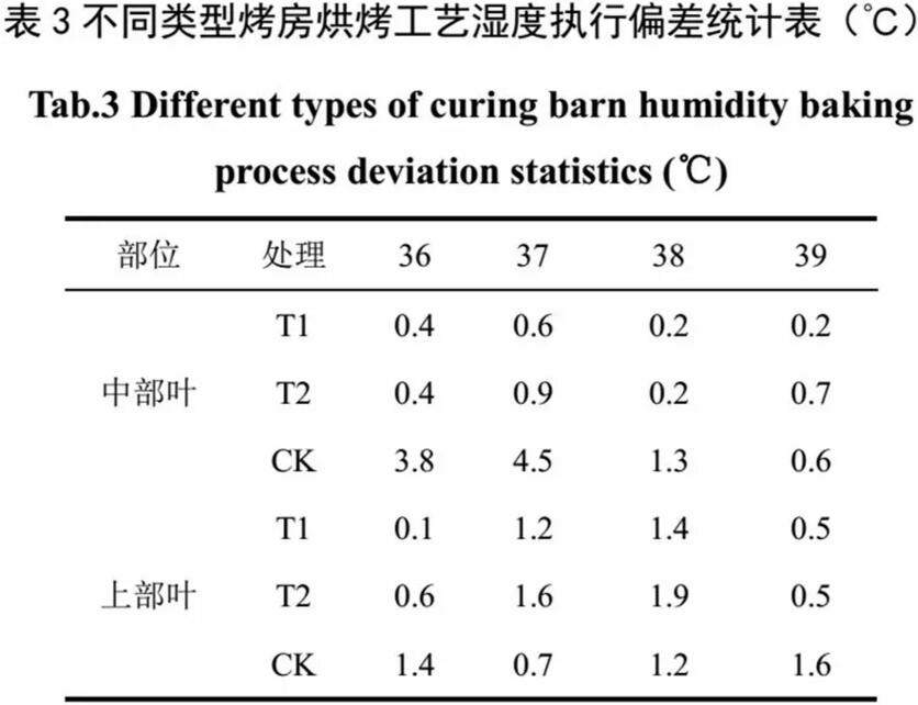 在溫度達(dá)到38℃、42℃、47℃(中部葉)和48℃(上部葉)、54℃時(shí),測(cè)定實(shí)際溫濕度與目標(biāo)溫濕度的偏差。